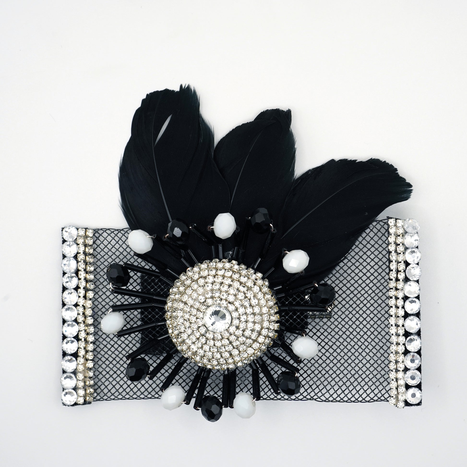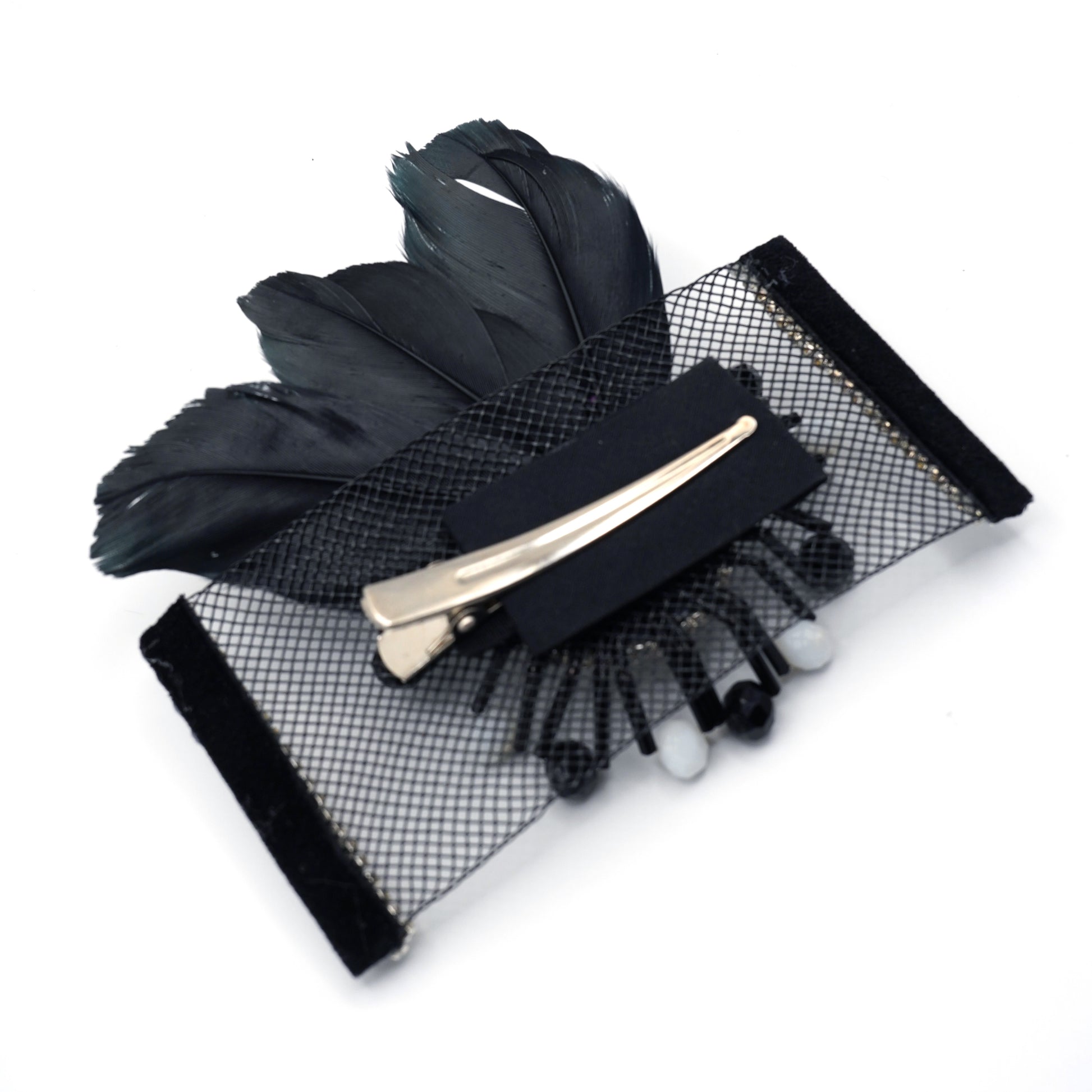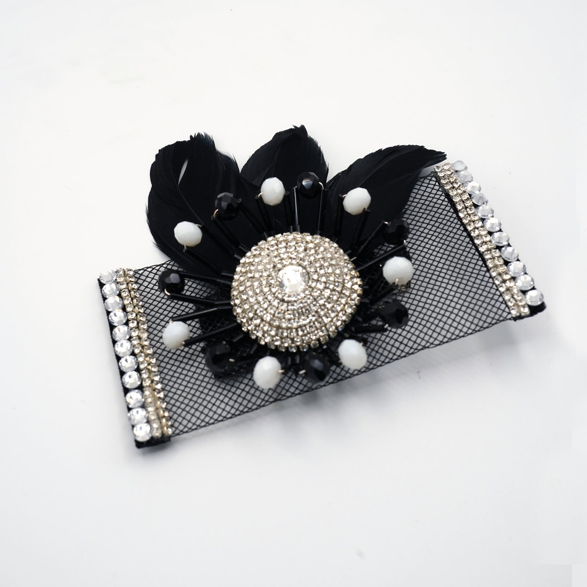 Pinche Rejilla, glamour Contemporaneo, colores que predominan el Negro, acompañado de brillos y cristales. Este accesorio es muy versatil, lo pudes usar en diferentes peinados.