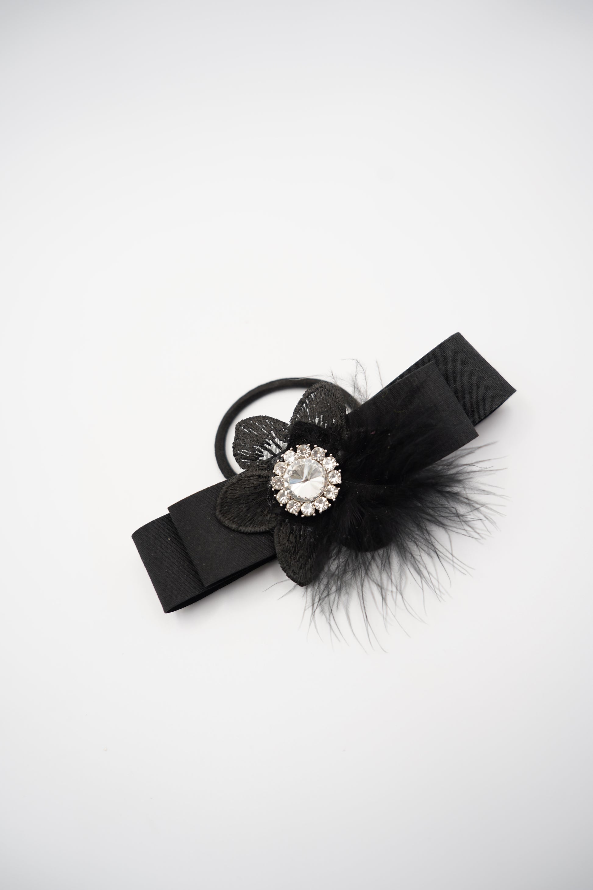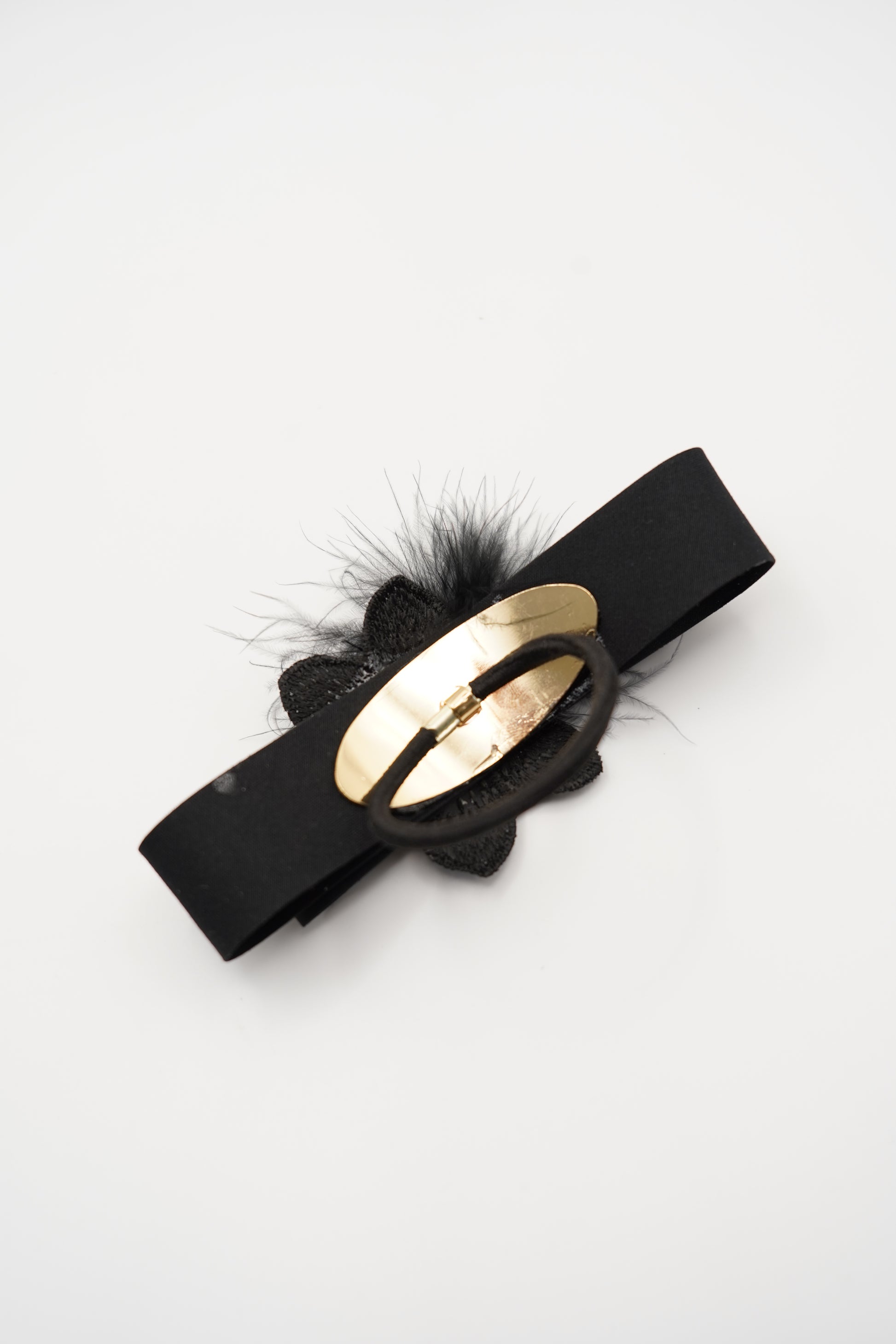 Black Muse con una flor y plumas negras le da un toque elegante a tu look, ideal para una fiesta o una ocasión especial, solo transversalidad.