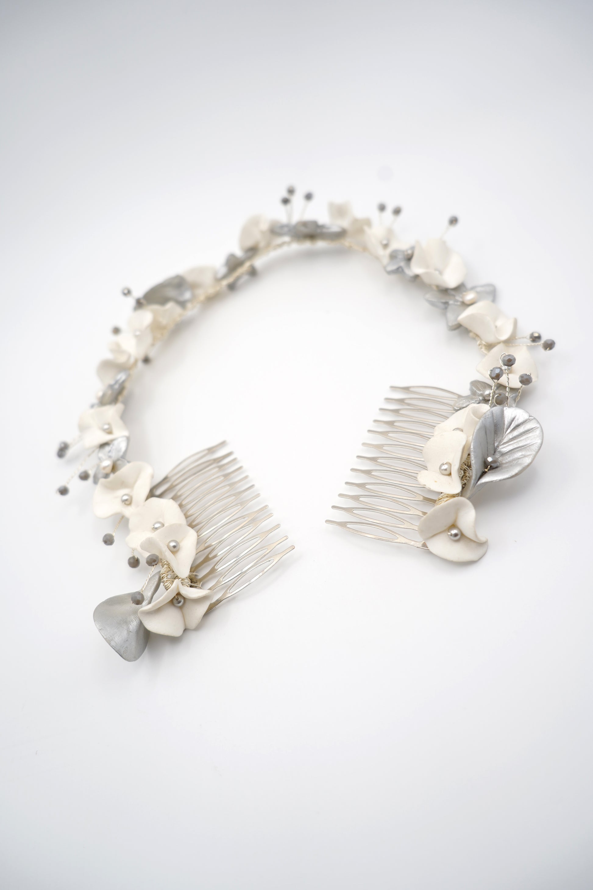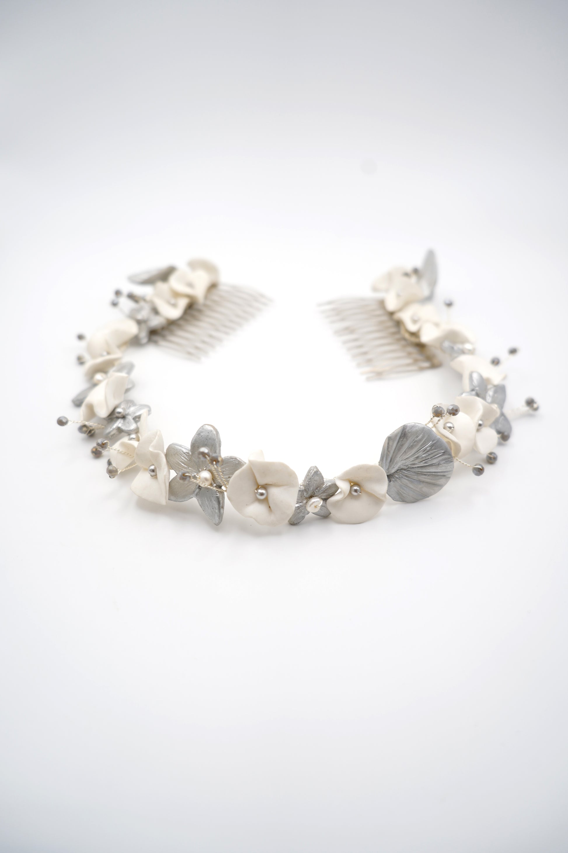 Flowers Space estaban junto a las estrellas en el espacio, son flores metalicas que se inspiran en las estrellas que brillan e iluminan , llevando esa iluminacion a tu look.