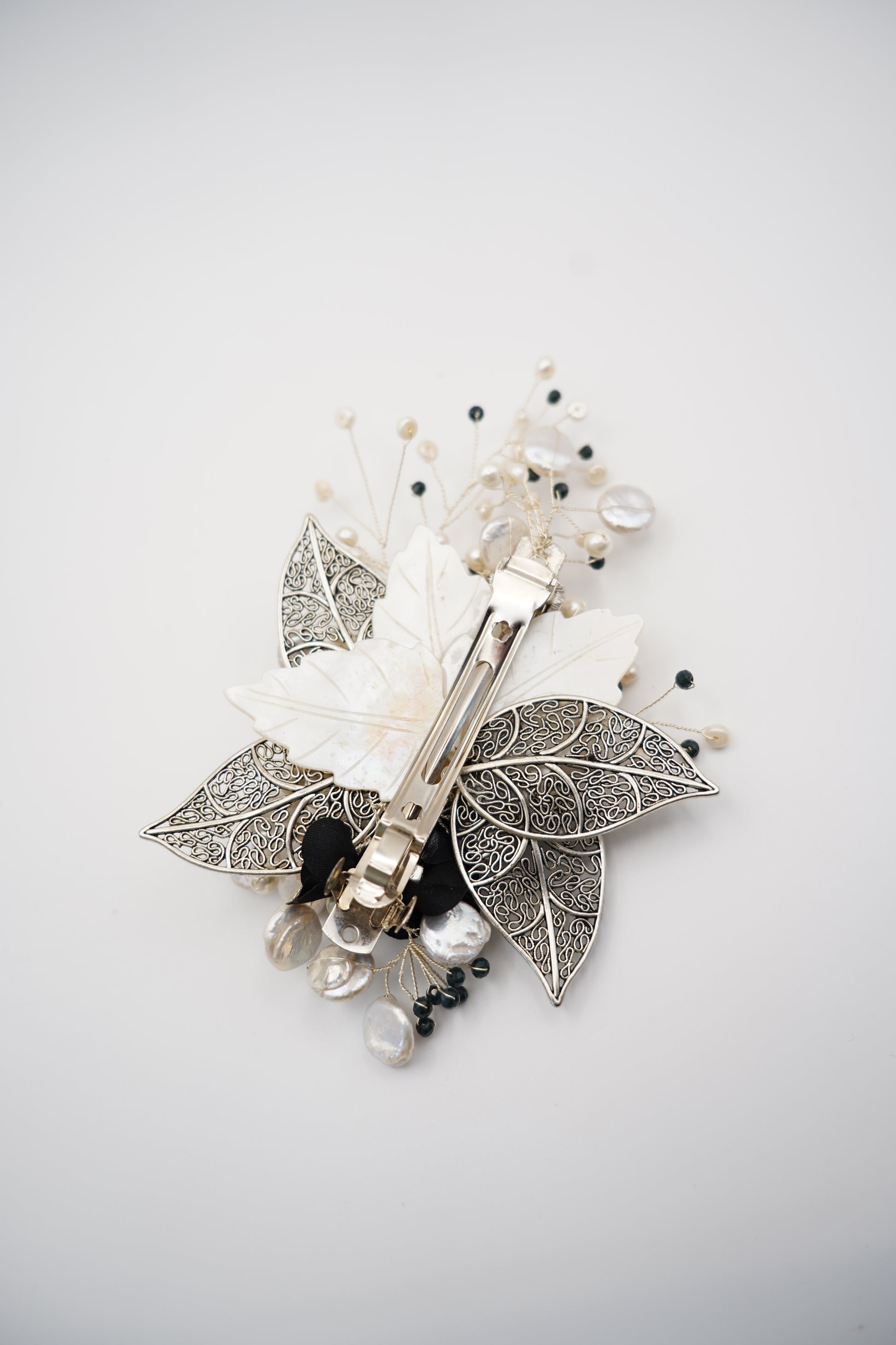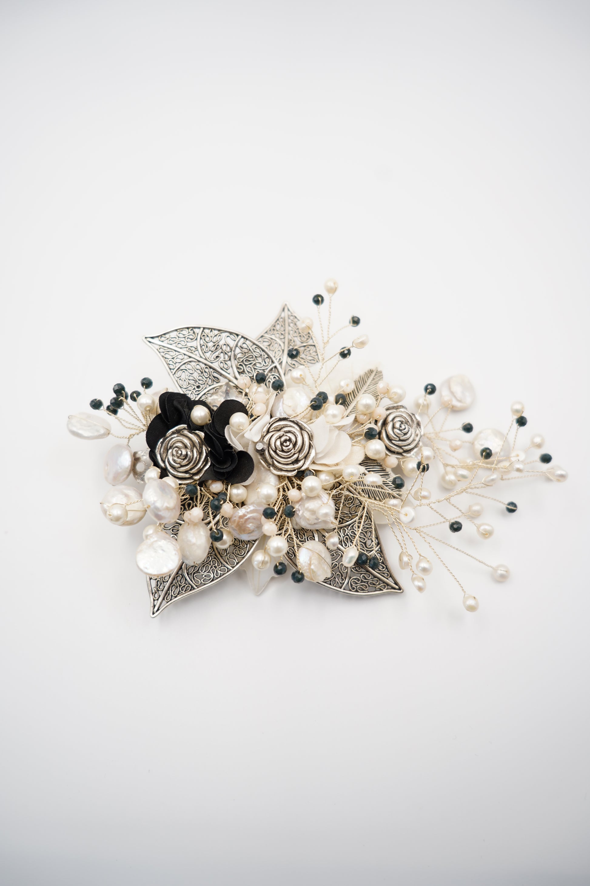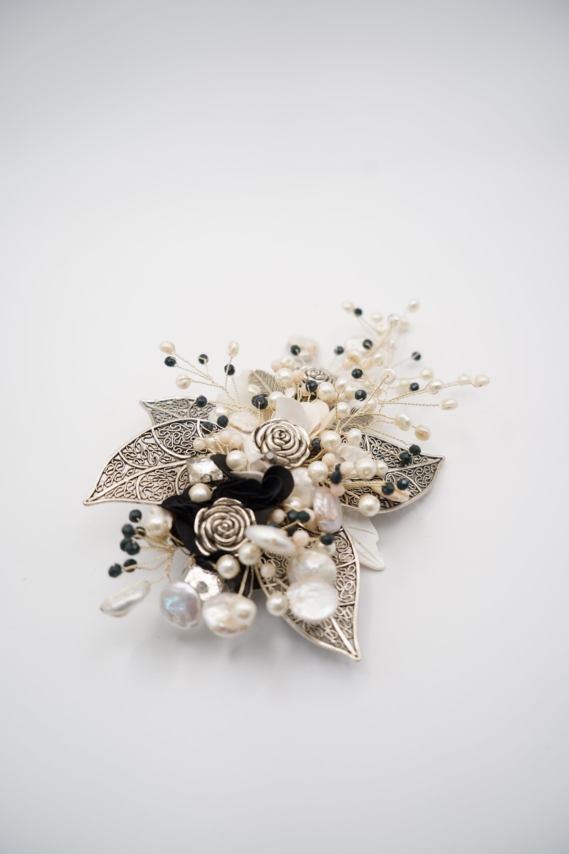 Rock Star viene a cautivar e inspirar con su flor metalizada una tremenda apuesta para llevarla en tu cabello y lucir esta flor rodeada de perlas.